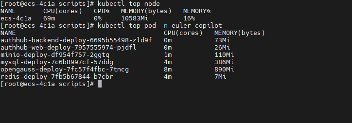 kubectl top pod -n euler-copilot