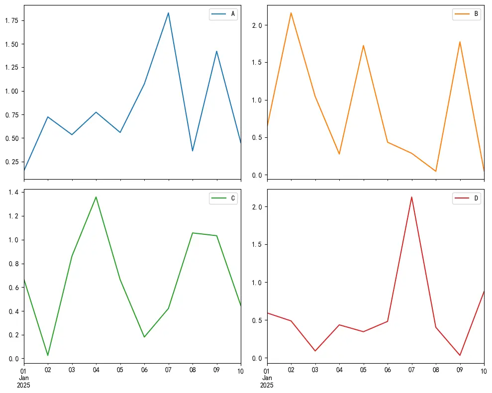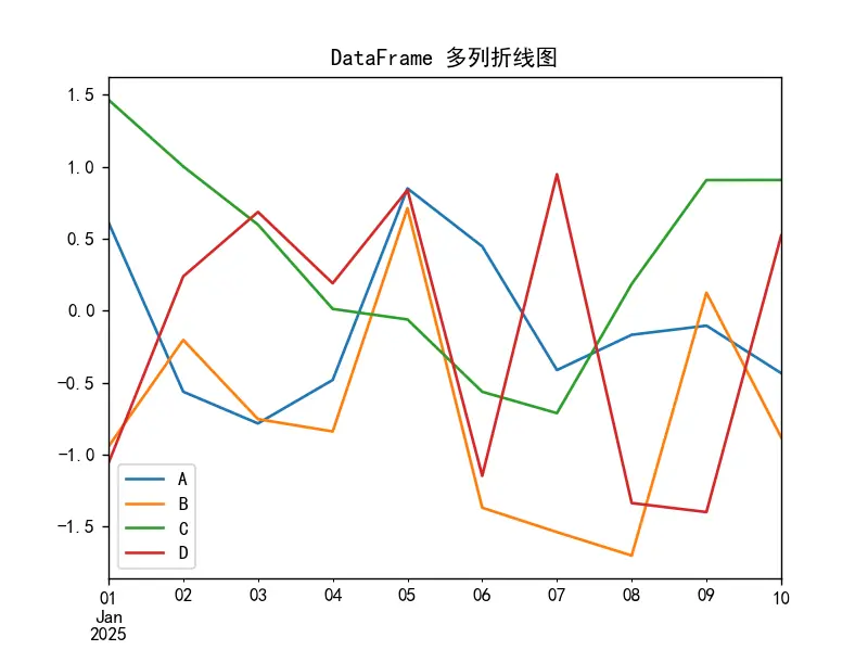 .plot()是 Matplotlib 的封装 ,返回matplotlib.axes.Axes对象 - 所有 DataFrame/Series 都可直接调用