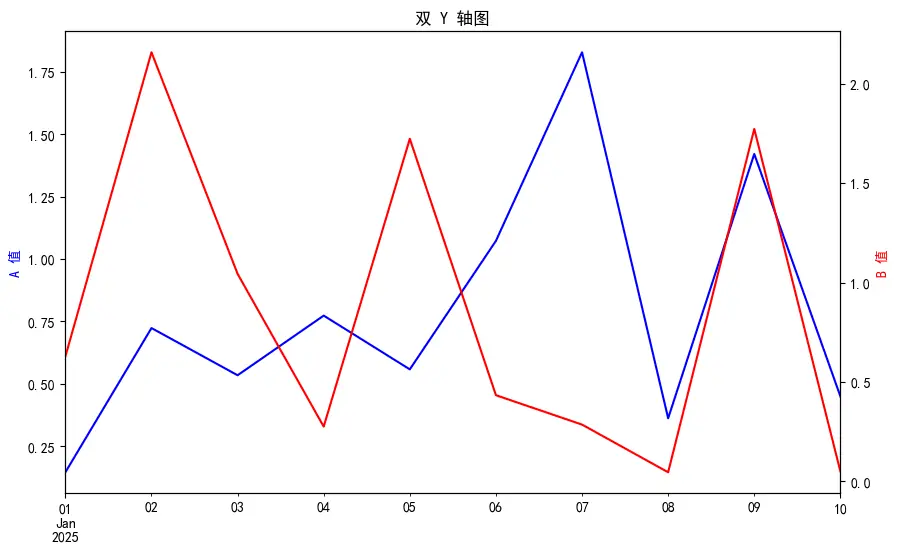 secondary_y在.plot()中直接使用(旧版本支持),建议用上述 Matplotlib 方式。