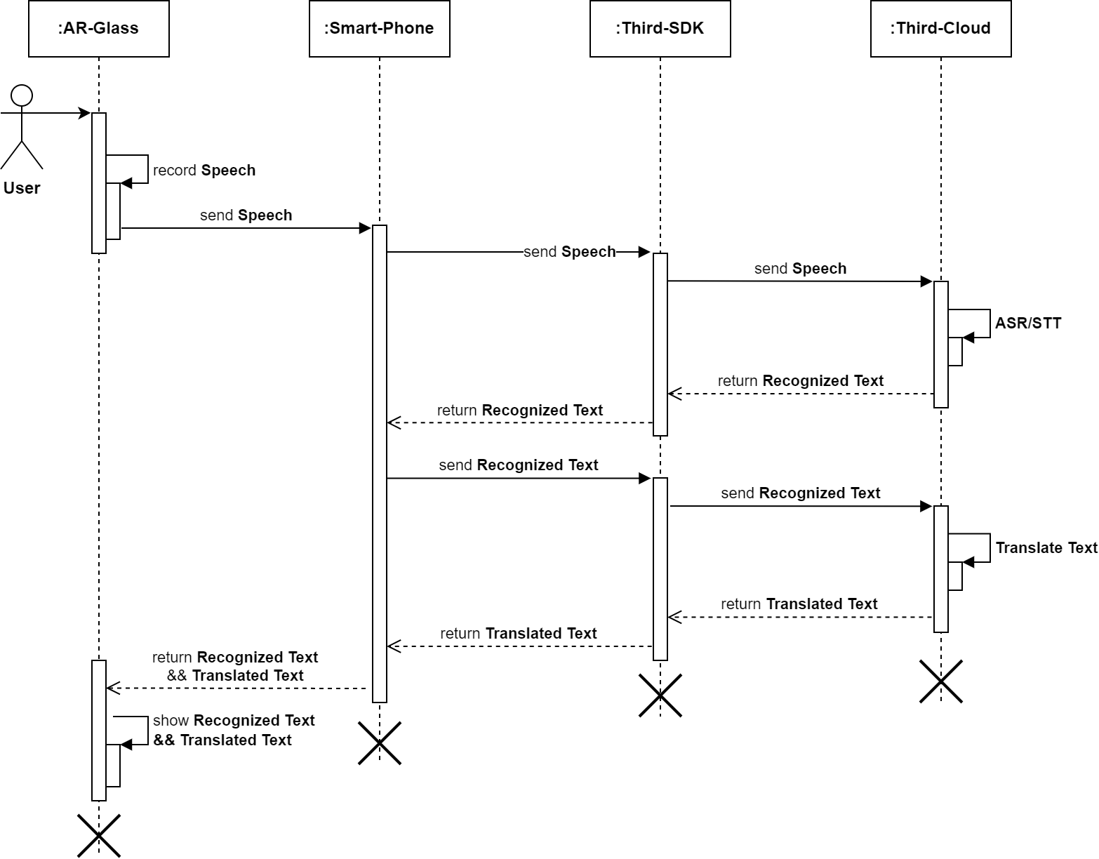 监听实时翻译接口MicrosoftTranslateCallback,onTranslated方法中获取到文本内容后,调用蓝牙私有协议将文本传给AR眼镜做显示。