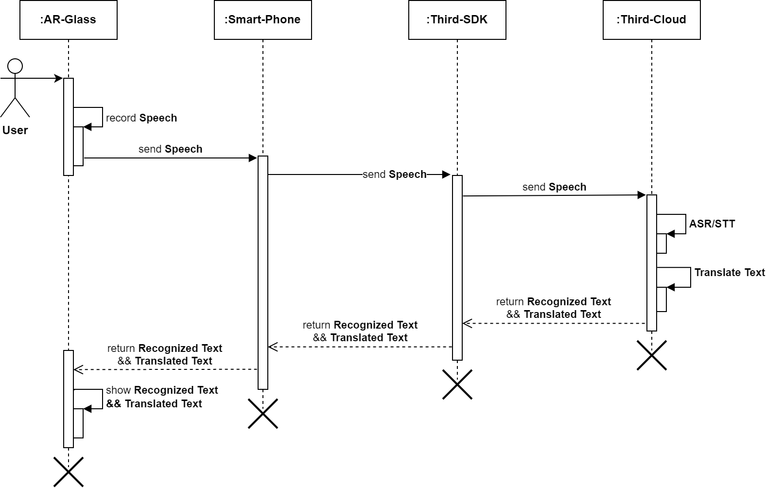 SimultaneousTask:通过一个SimultaneousTask任务类,管理AR眼镜的音频输入、源语言与翻译语言文本输出到AR眼镜、以及实时翻译/同声传译功能的流程管理。