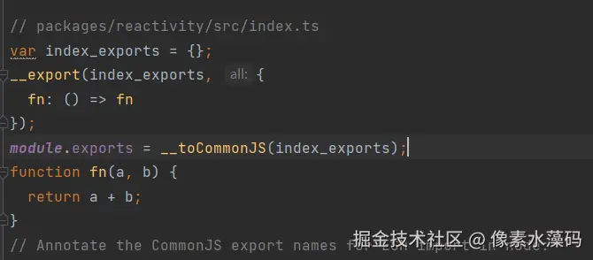 * 例如:packages/vue/dist/vue.cjsindex.js 或 packages/vue/dist/vue.esmindex.js