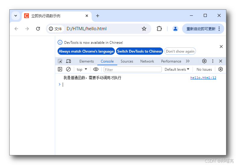 normalFunc(); // 手动调用 -> 输出:我是普通函数 , 需要手动调用才执行