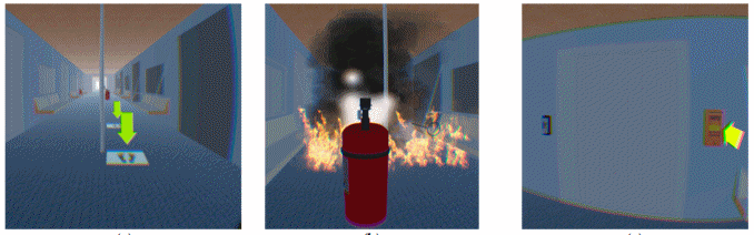 正式实验前,所有被试均需签署知情同意书,填写性别、年龄等基本个人信息,并进行DISC性格类型测试。然后,参与者需要在虚拟练习场景中练习基本操作,如移动、使用灭火器等。
