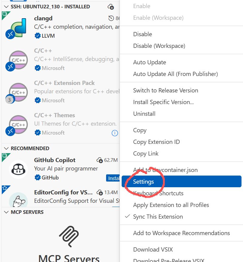 在插件市场上搜索Clangd,一定要确保主机 和 远程机器都要安装上,然后记得禁用掉C/C++ Extension,因为可能这俩插件会引起冲突。