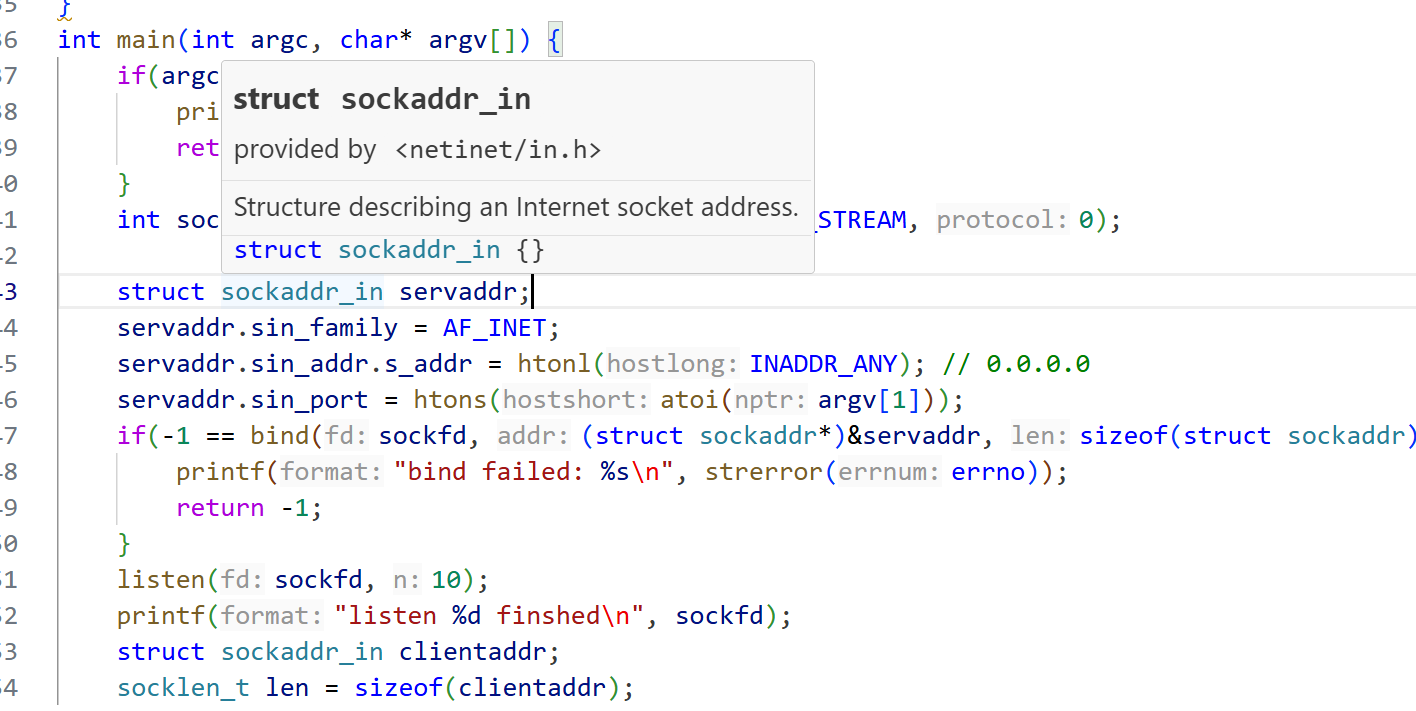 可以看到,我们可以进行代码补全,查看函数参数类型,或者查看定义,非常方便!