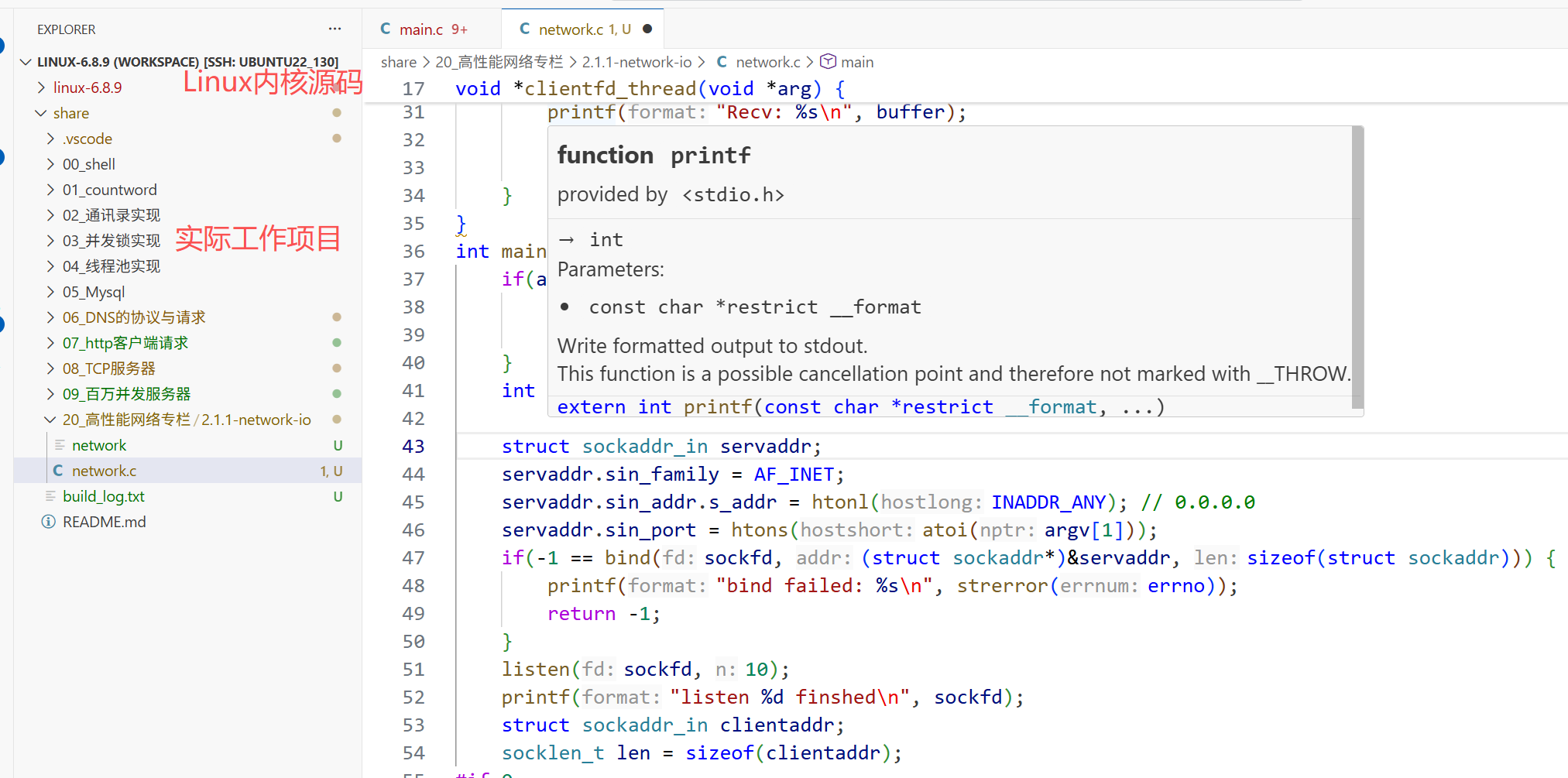 最近在用VsCode学习网络编程时,想在写代码的时候能够查看内核源码,看了许多教程,没配成功,但是最终摸索了一种比较方便的方法。