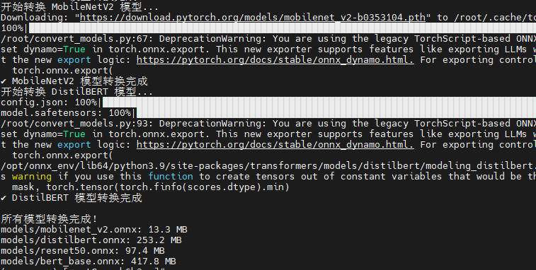 通过touch convert_models.py创建模型转换脚本,首先开始转换模型,通过python convert_models.py命令