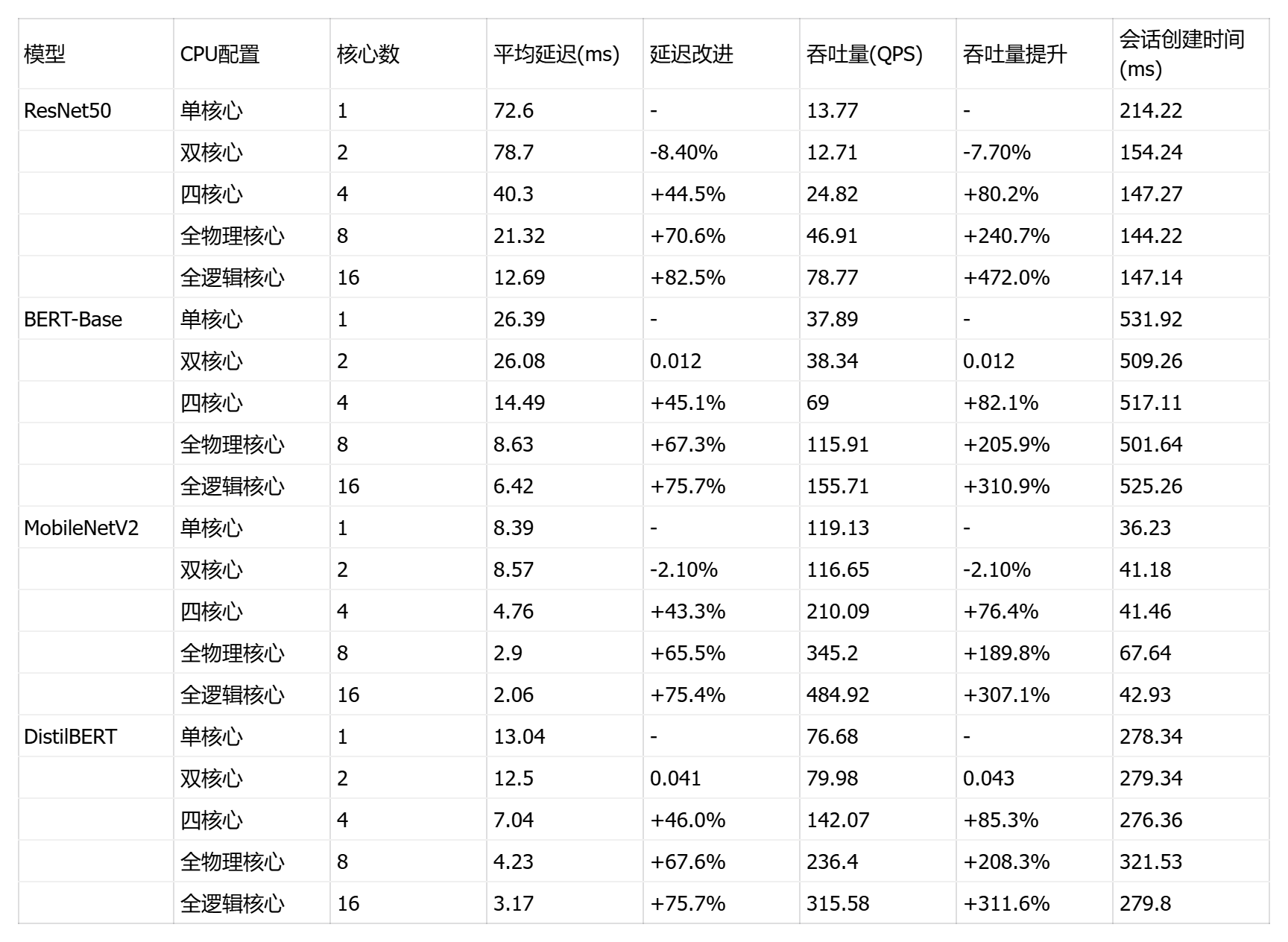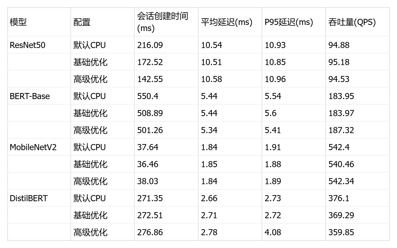 本研究系统测试了 ONNX Runtime 在 openEuler 22.03 LTS 上的性能表现。