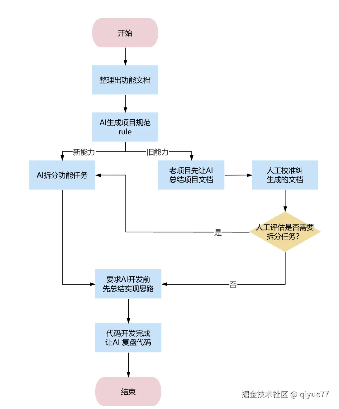 - 有流程图或者架构图的需求,可以让AI生成字符串版本流程图/架构图,然后在用其他平台工具人工绘制