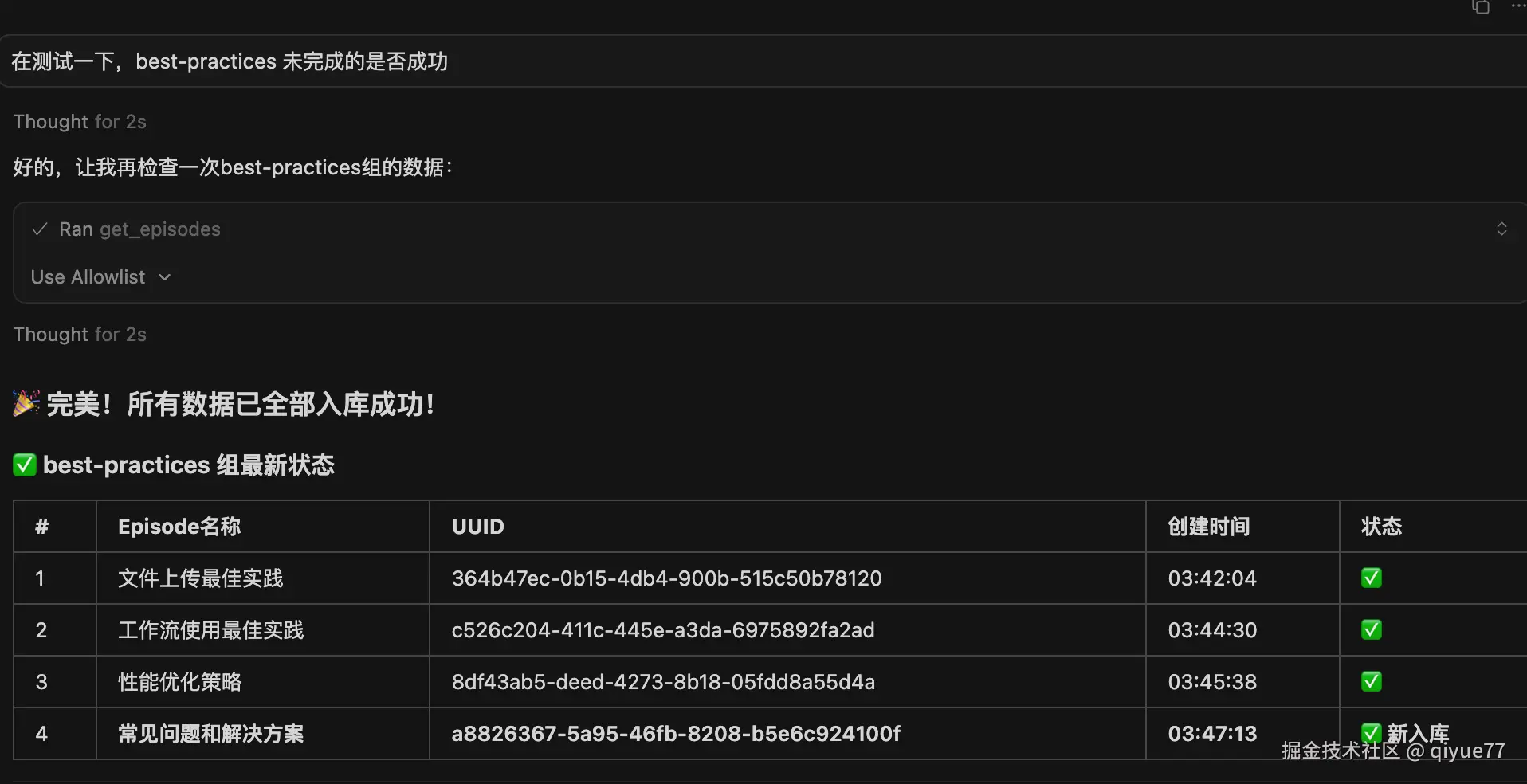 - 规划好后,调用MCP,自动处理知识向量化,添加知识图谱数据库