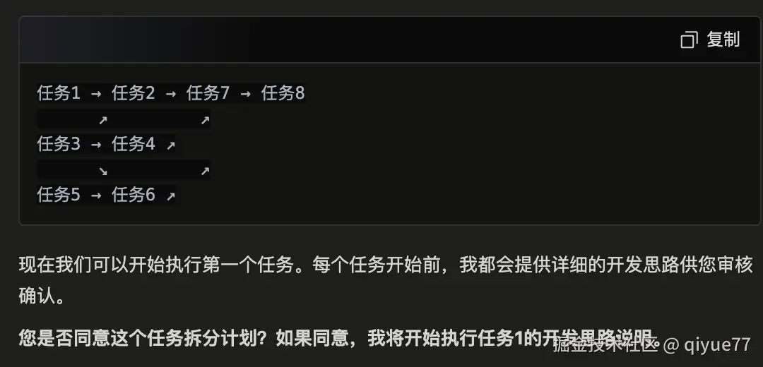 - AI开发太快,开代者理解跟不上,让其先说实现思路,人工检测后在开始编码。