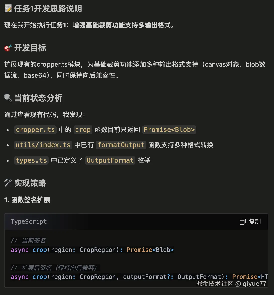 技术调研这一块,AI对开发者是降维打击。以前使用新技术总是恐惧,现在这块全交给AI就妥妥的。AI实现 95%以上的内容。