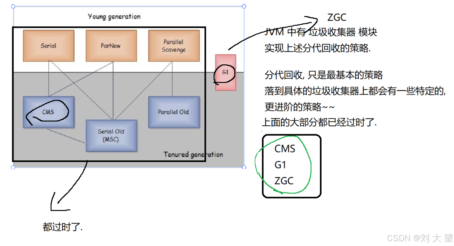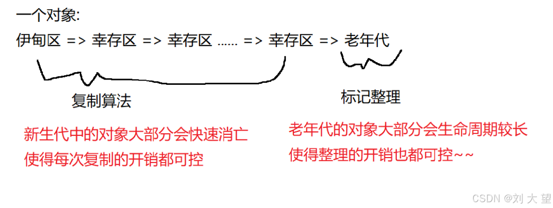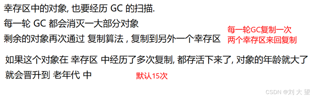 "代"=>对象的年龄~年龄是GC的伦次,某个对象,经历一轮 GC 可达性分析之后,不是垃圾;