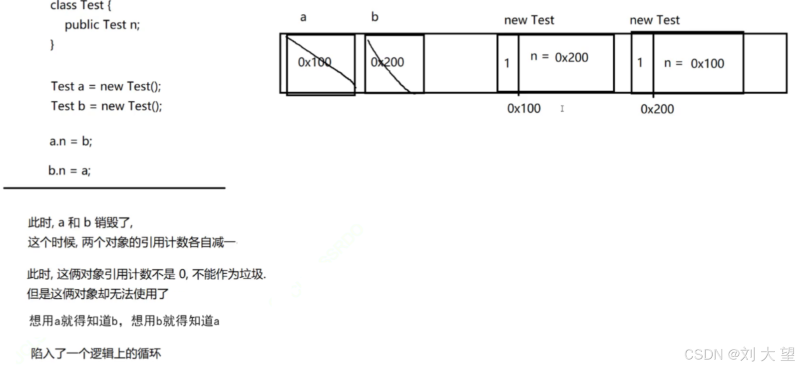 存在循环引用的情况,会导致引用计数的判定逻辑出错