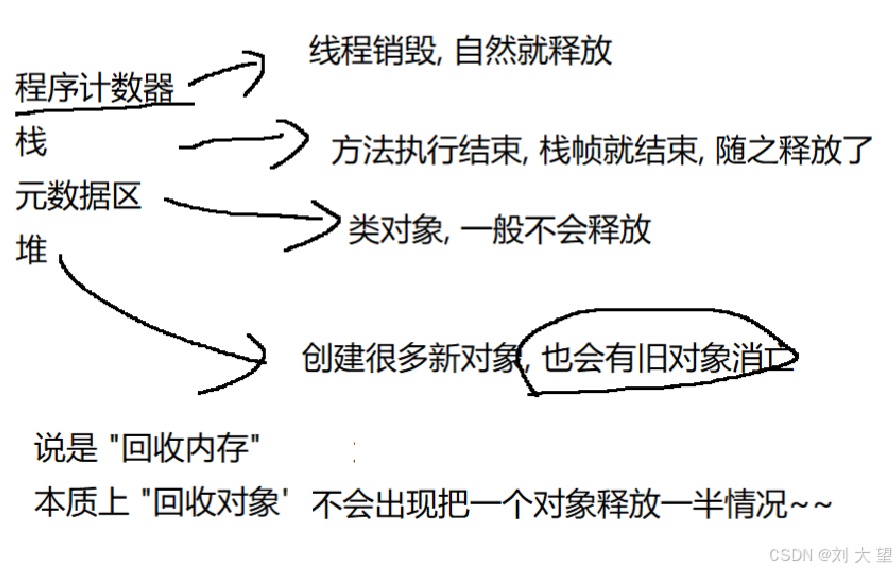 如果堆上的对象,不再使用了的话,就需要被释放掉~~(垃圾回收后面会讲到)