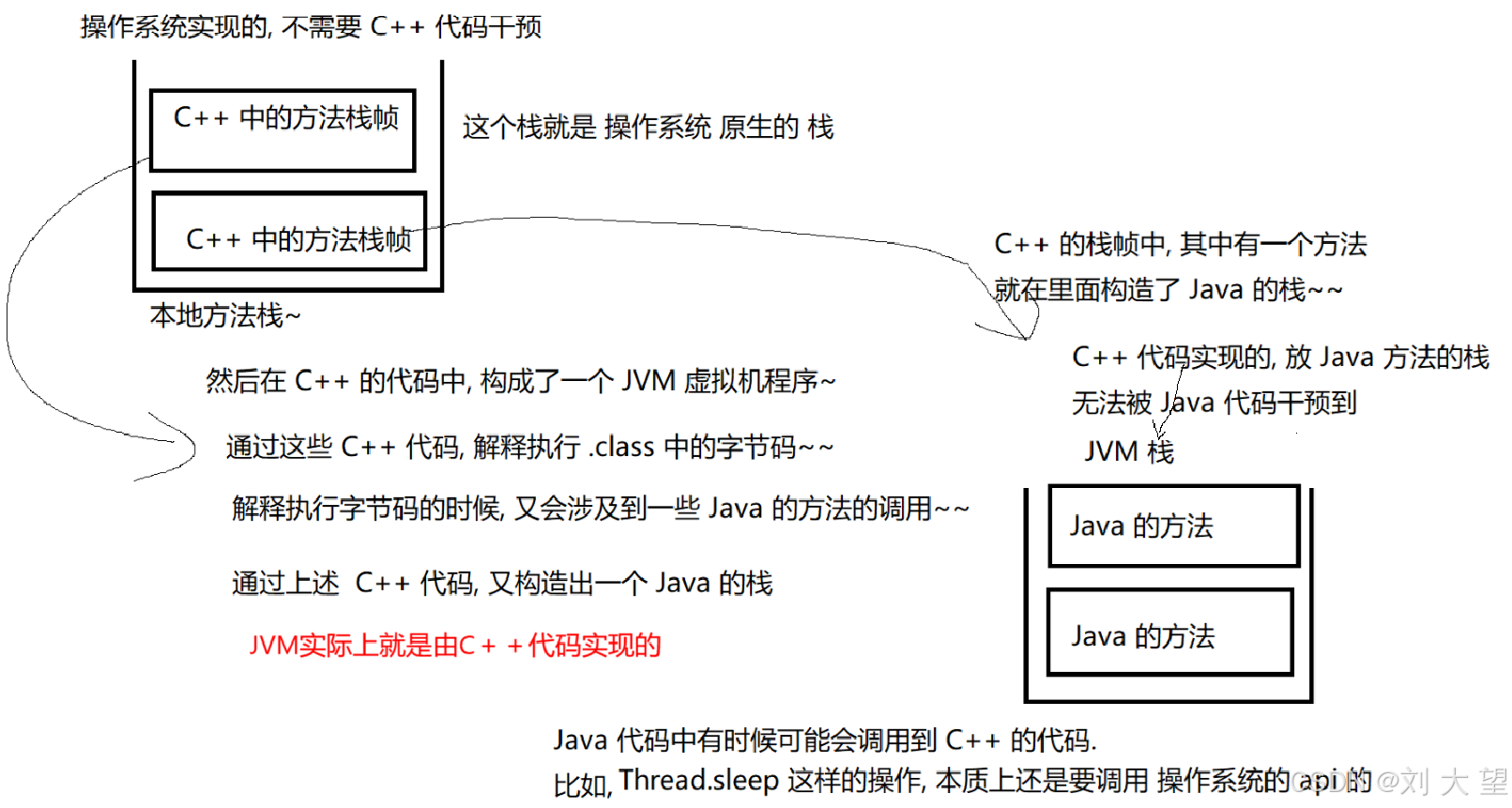JVM的栈并不是操作系统直接实现的 ,而是由c++代码实现