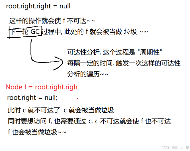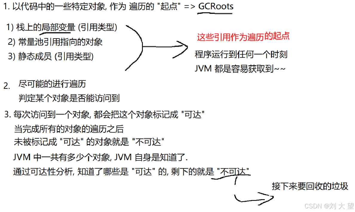 把对象之间的引用关系,理解成了一个树形结构.从一些特殊的起点出发,进行遍历.只要能遍历访问到的对象,就是"可达".再把"不可达的"当做垃圾即可