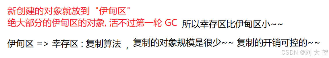 Survivor区),而老年代存放长期存活对象,占用空间大,浪费50%内存不现实。对象存活率高 :
