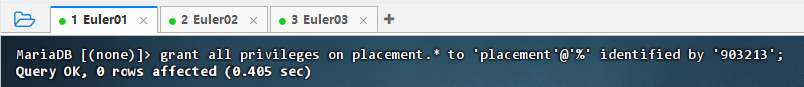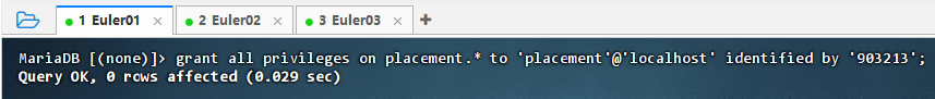 grant all privileges on placement.* to 'placement'@'%' identified by '903213';