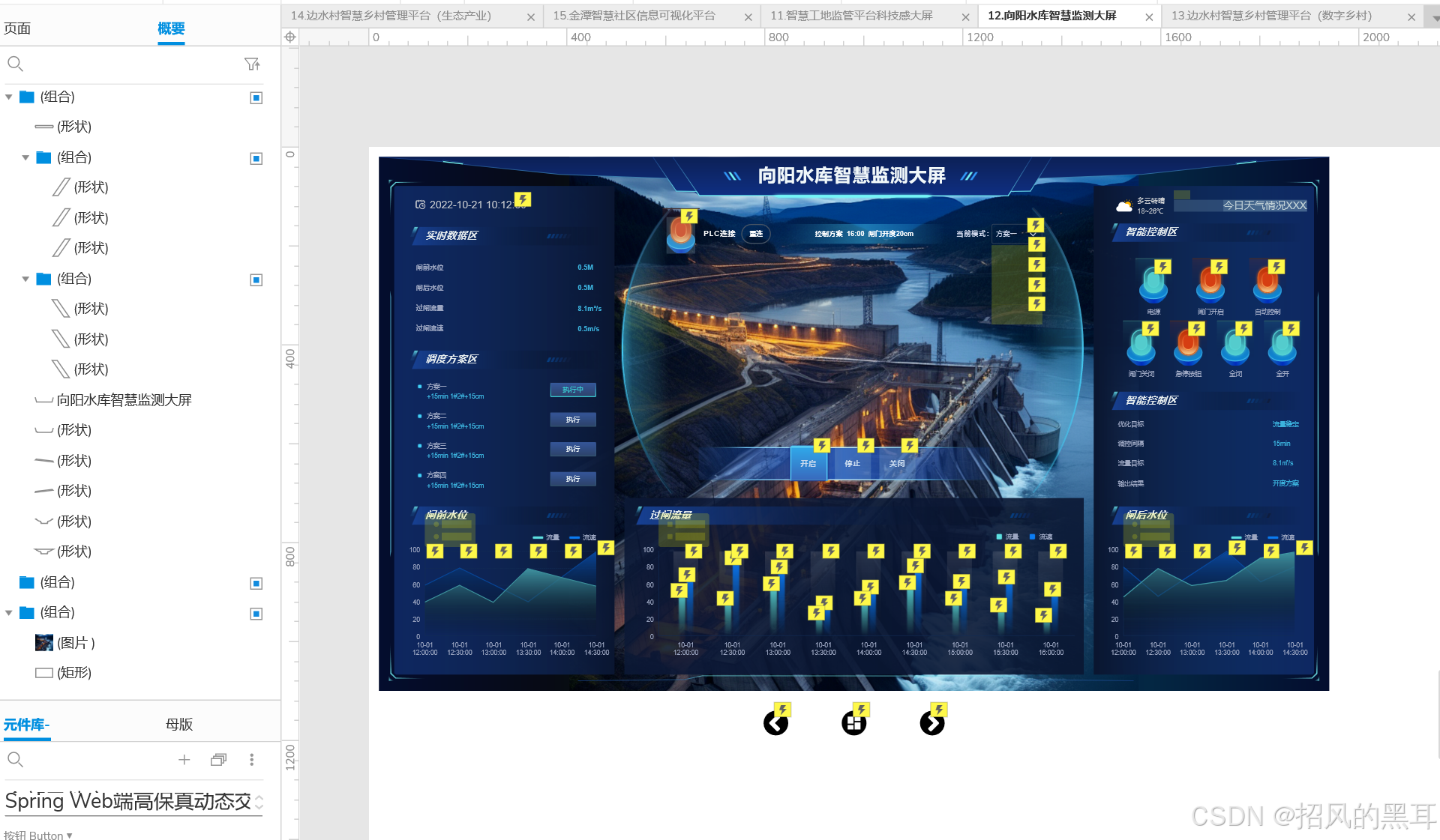 向阳水库智慧监测大屏是一个典型的Axure大屏可视化原型设计案例,展示了如何通过现代化的数据可视化技术,实现对水库运行状态的实时监控和智能管理。该大屏不仅具备直观的数据展示功能,还集成了智能控制区域,使得操作人员能够高效地管理和调度水库资源。