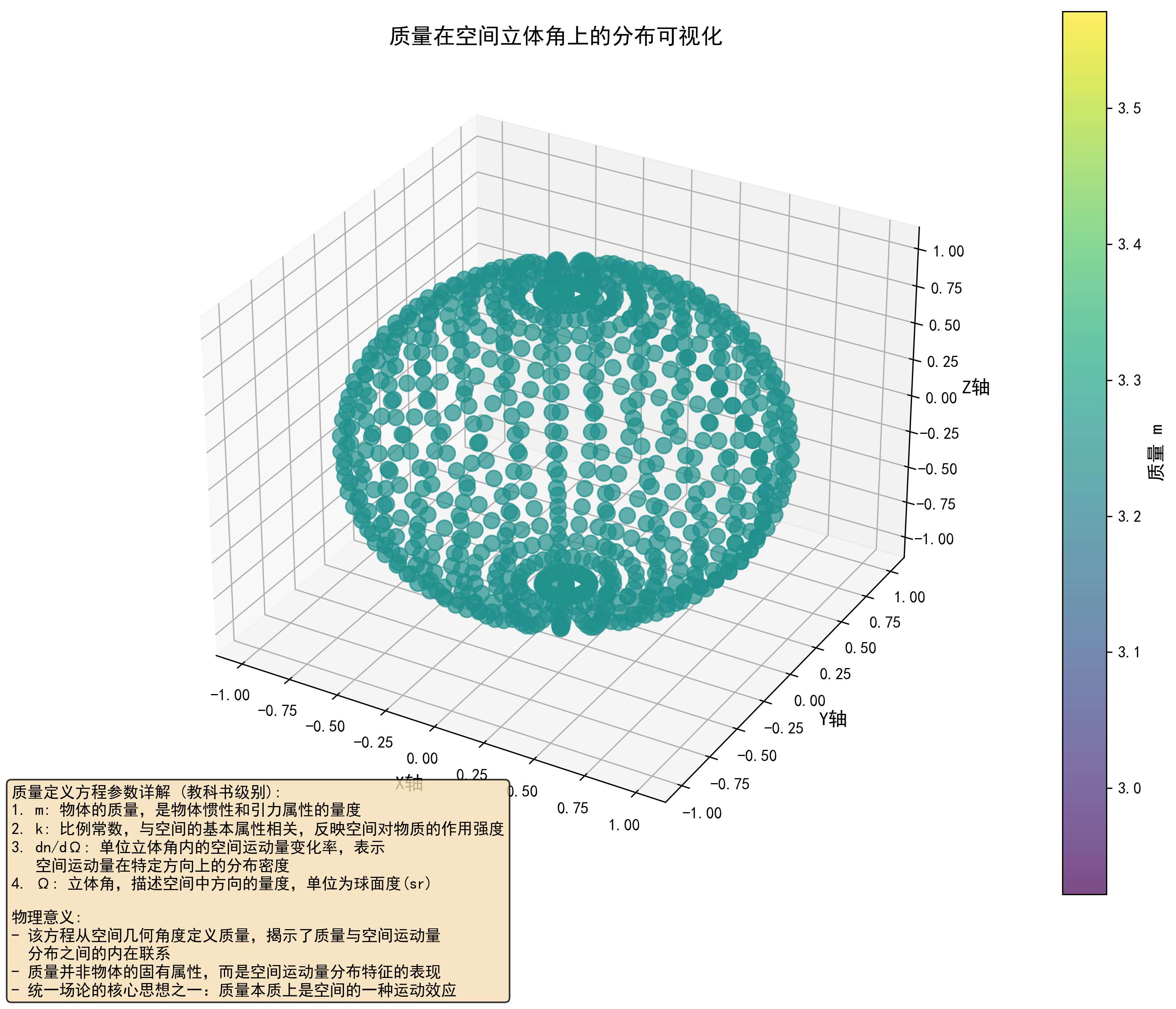 物体的质量大小由其周围空间运动的角分布密度决定------质量越大,单位立体角内通过的空间位移矢量条数越多,空间运动越"密集"。