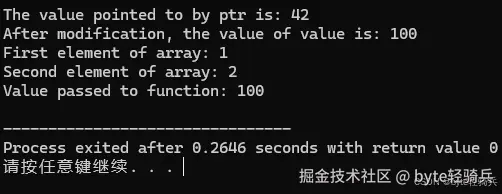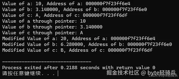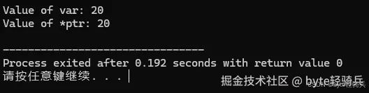 printf("Value of *ptr: %d\n", *ptr); // 解引用ptr,打印var的值