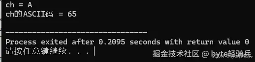 printf("ch的ASCII码 = %d\n", ch); // 字符也可以按整数打印,显示其ASCII码