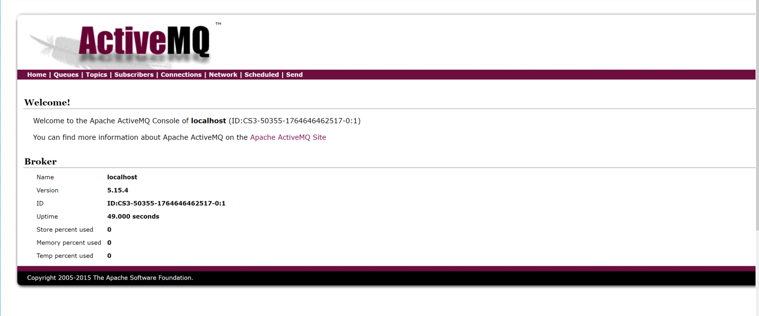启动ActiveMQ以后,可以使用浏览器登陆:http://localhost:8161/admin/验证, 默认用户名是:admin 密码是:admin
