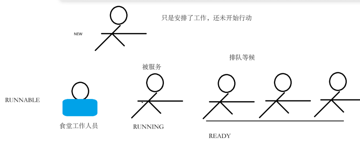 - NEW 安排了工作,还未开始行动 ,new了Thread对象,还没有start()