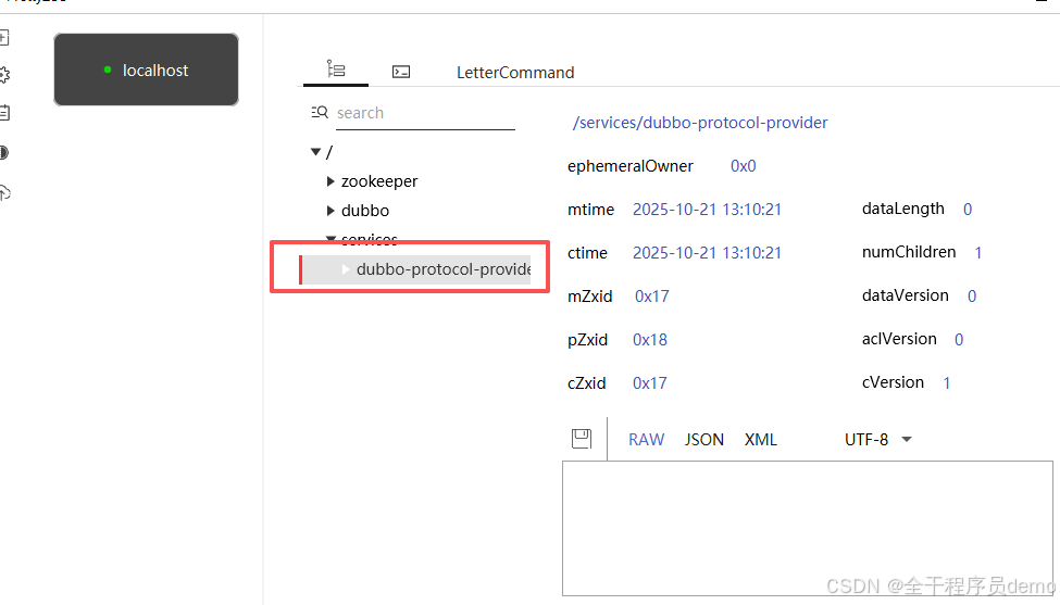 启动服务后如下图,可以在zookeeper的图形化管理界面找到这个服务,说明服务已经注册到了zookeeper中.
