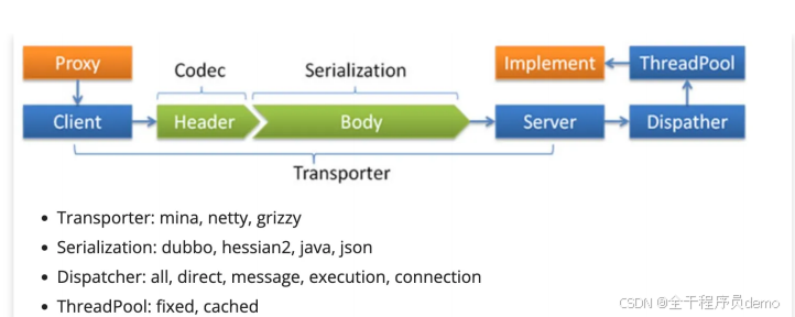 Dubbo的默认协议,⾃⼰定义的私有协议,基于TCP层,默认的通信⽅式是Netty4