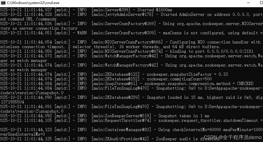 修改zoo.cfg文件,可以看到有一个dataDir的属性.这个是zookeeper的存储树状结构的临时目录,我们需要创建一个数据目录并且将目录位置进行配置D:\DevApp\apache-zookeeper-3.6.1-bin\data,这里我创建的data目录和conf同级,然后修改dataDir的属性