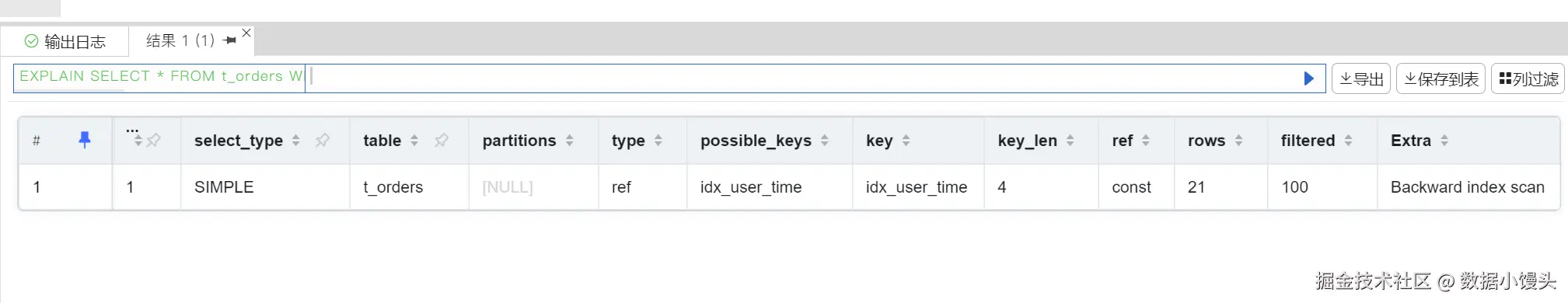 再次执行 EXPLAIN。