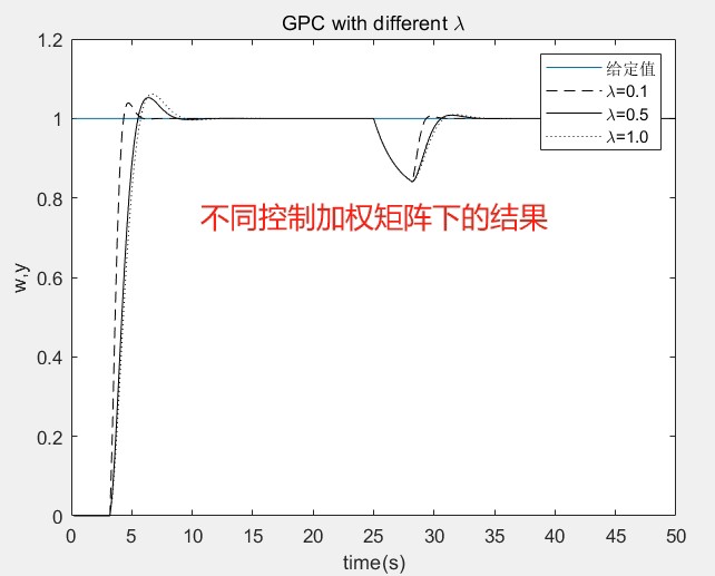 60.基于matlab的时滞系统广义预测控制(GPC)算法仿真,不同控制加权矩阵控制效果对比,输入参数预测时域、控制时域、控制加权矩阵、误差加权矩阵。 输出对比结果。 程序已调通,可直接运行。