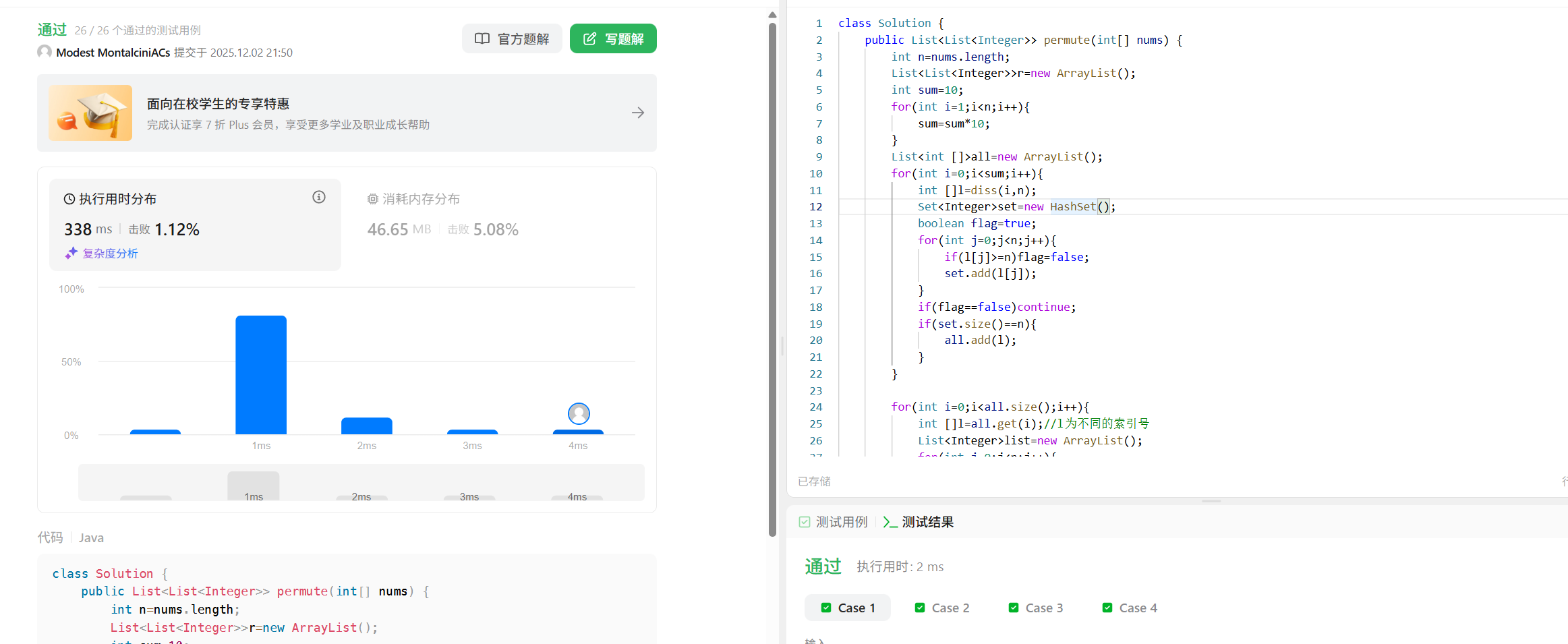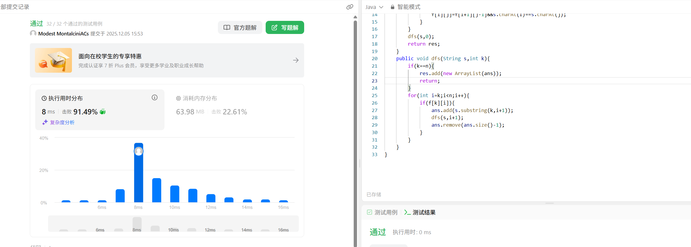 后面我也将我的,在力扣中点运行成功,但点提交成功不了的代码(一个内存超出,一个运行时间超出)的代码都附在本文中。