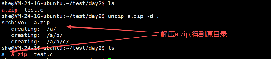 解压 :unzip a.zip -d .(-d 指定解压目录)