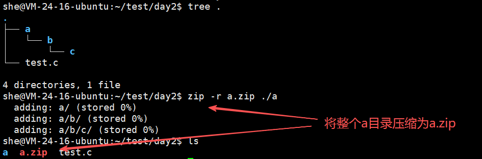 压缩 :zip -r a.zip ./a (-r 递归压缩目录)
