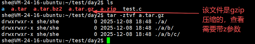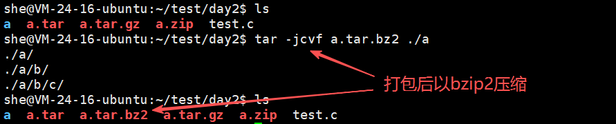同理对于 a.tar.bz2 ,则需要带 j 参数。
