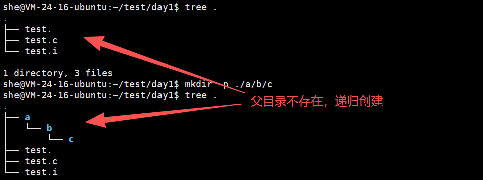 -p:递归创建目录。如果父目录不存在,系统会自动创建,常用于创建路径mkdir -p a/b/c