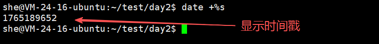 时间戳 :date +%s(显示从 1970 年 1 月 1 日至今的秒数) 。