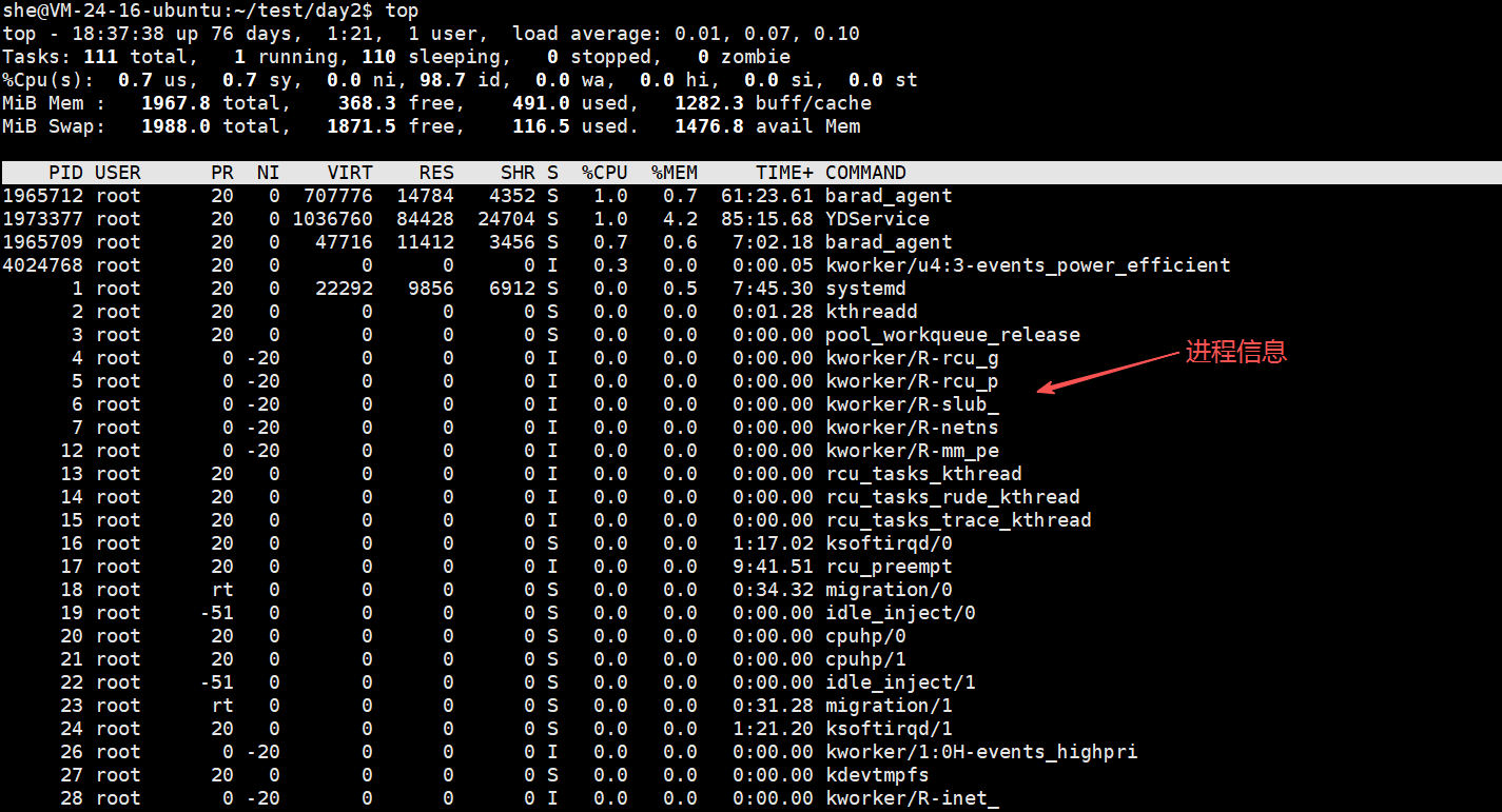 top:动态监视系统进程状态(类似 Windows 任务管理器) 。