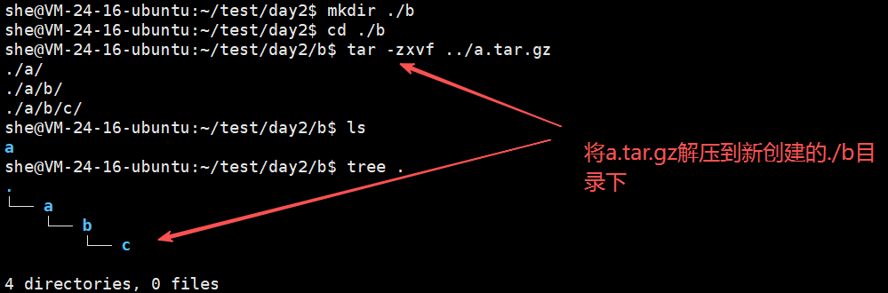 使用范例三:将 a.tar.gz 文件解压缩在 ./b 底下