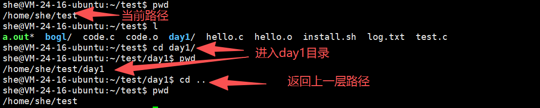 cd ..:返回上一级目录 。cd ~:进入当前用户的家目录 。cd -:返回最近一次访问的目录 。