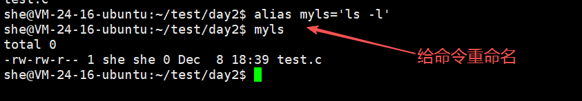 alias:给命令设置别名,例如alias myls='ls -l'。