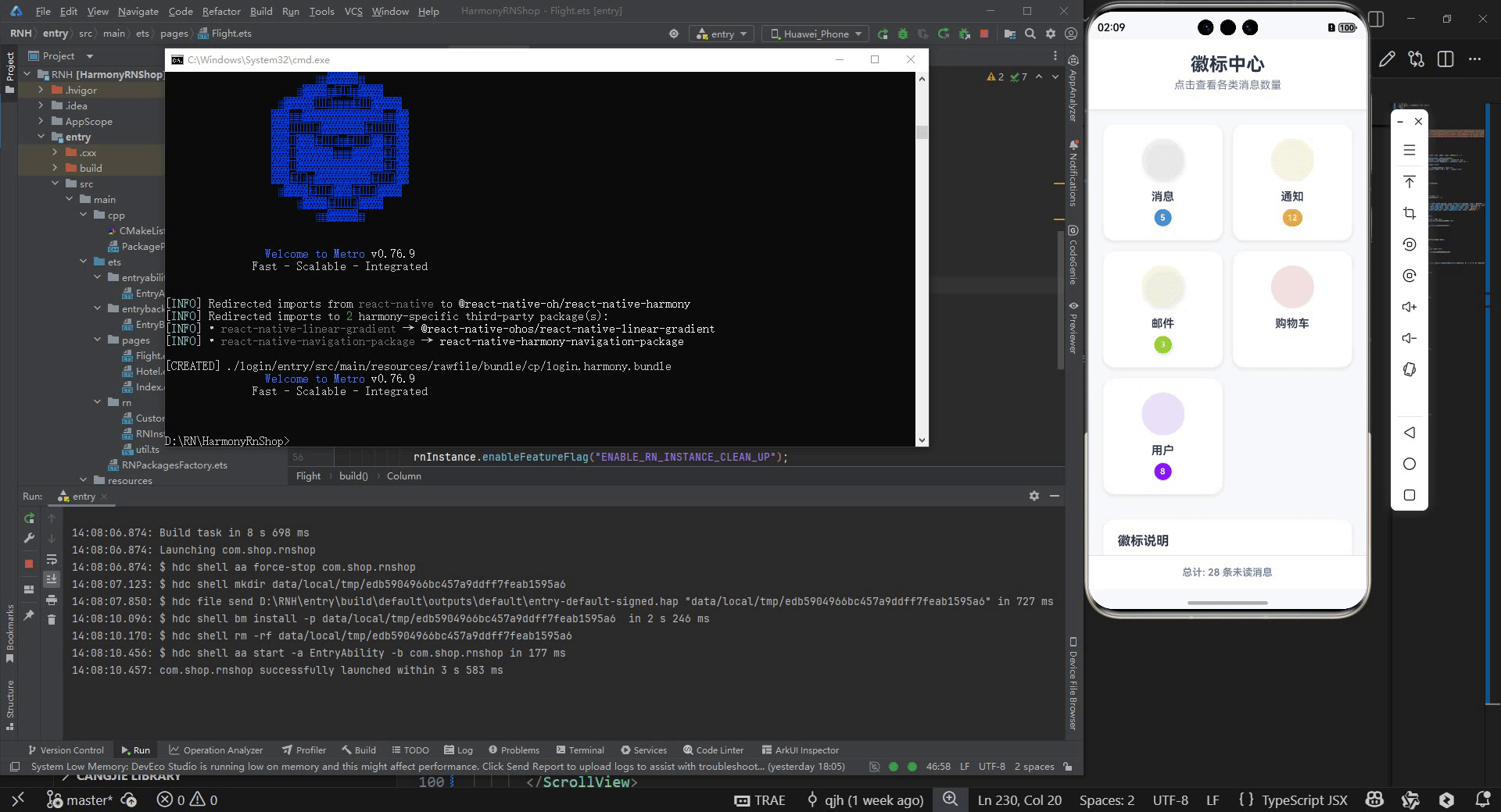接下来通过打包命令npn run harmony将reactNative的代码打包成为bundle,这样可以进行在开源鸿蒙OpenHarmony中进行使用。