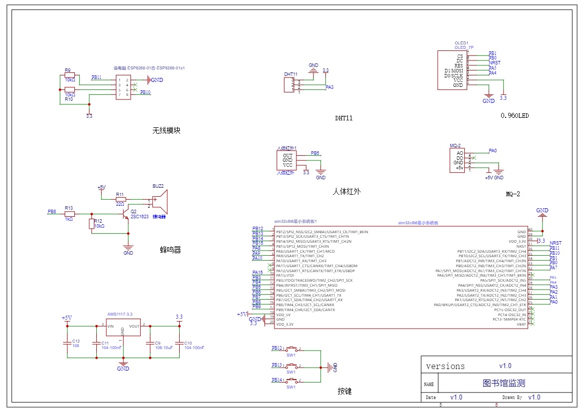 7.按键:可以按键控制布控,实现人体监测,可以调控有害气体阈值数据;