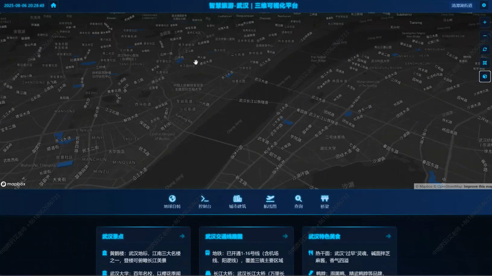 在此背景下,"智慧城市武汉:三维可视化平台"应运而生,旨在通过数字化技术重构文旅生态,打造科技赋能、互动体验升级的新型旅游范式,为武汉智慧旅游生态建设注入新活力。