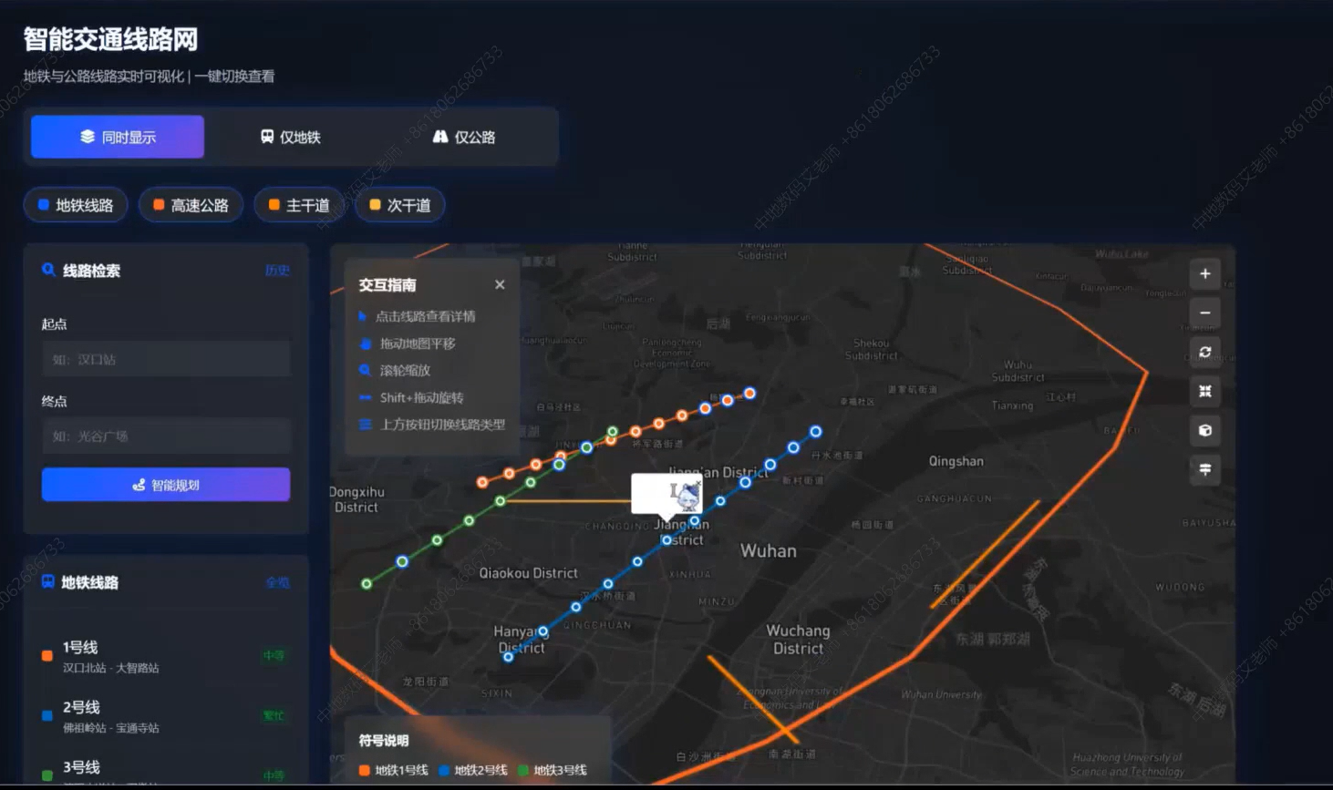 - 智能线路规划:左侧设置线路检索系统,输入起点和终点后自动规划最优线路