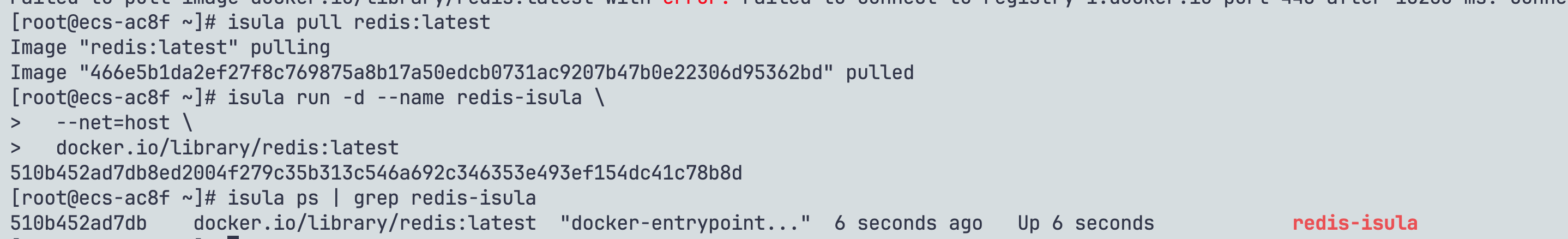 - iSulad Redis用的是host模式(--net=host),直接用宿主机的6379端口